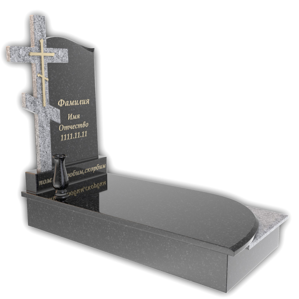 - Размер 1: стела 100х50х5, крест 110*50*6, подставка 65х12х12, надгробие 160х70х20. Надгробие состоит из шести плит.