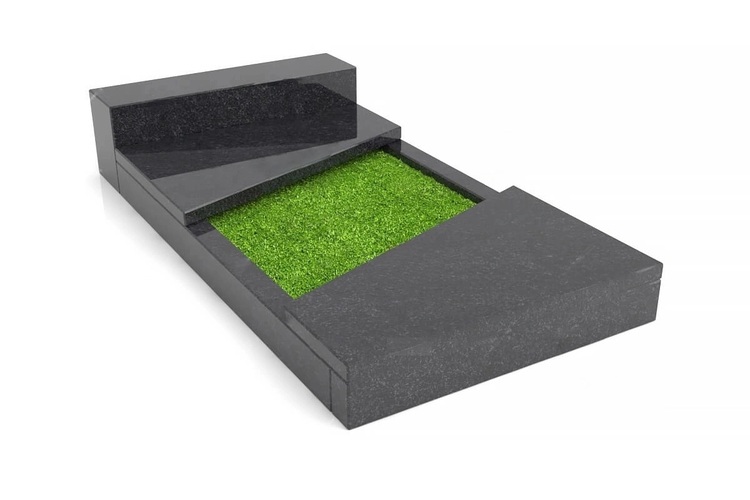 Надгробие из гранита, состоит из подставки для стелы и трех брусков, сверху добавлены две фигурные плитки из гранита.