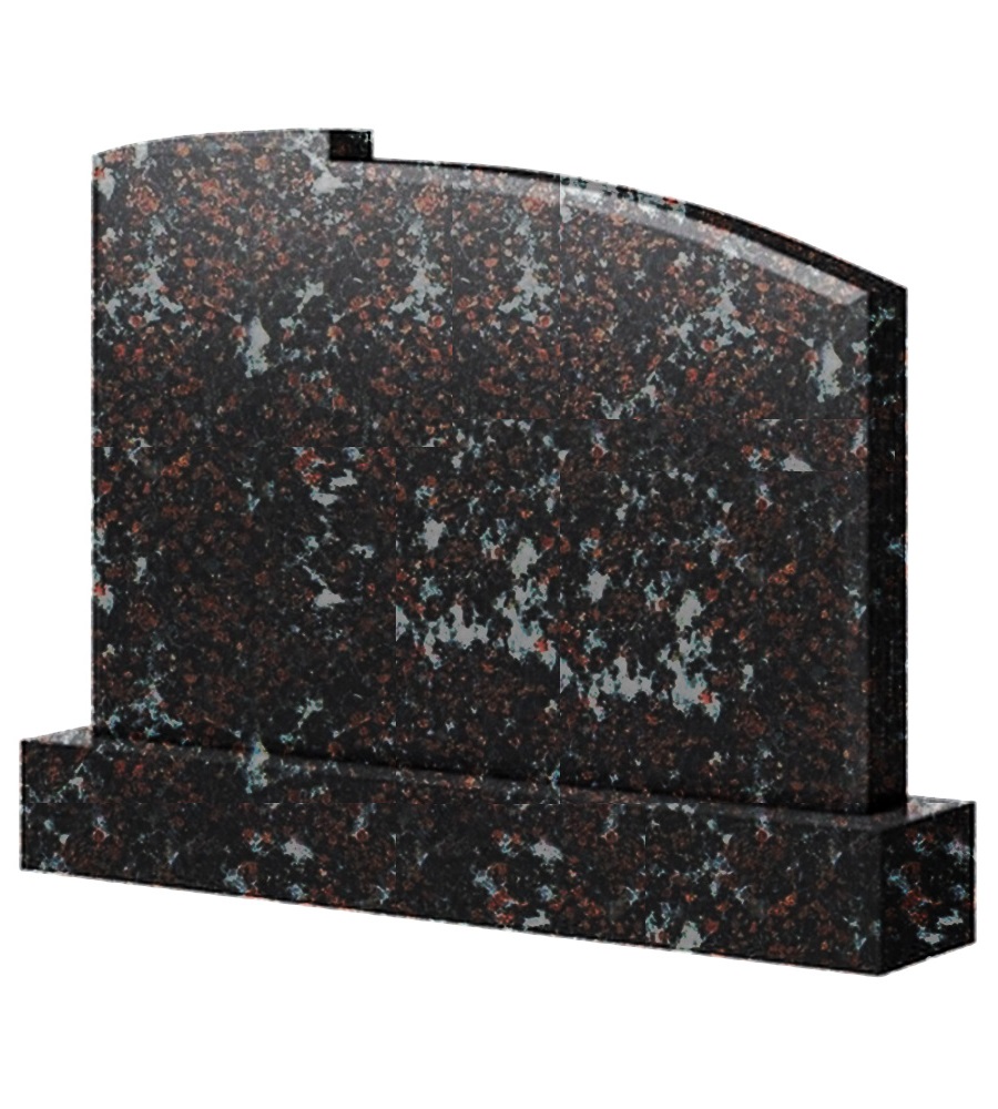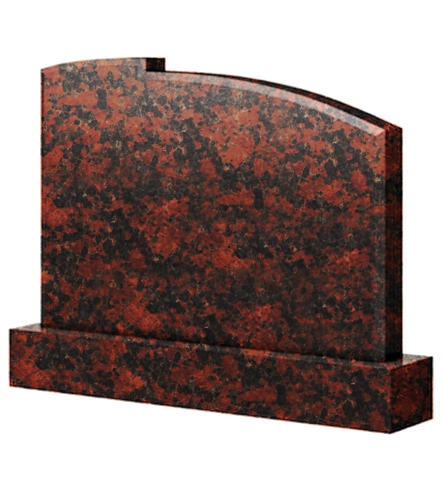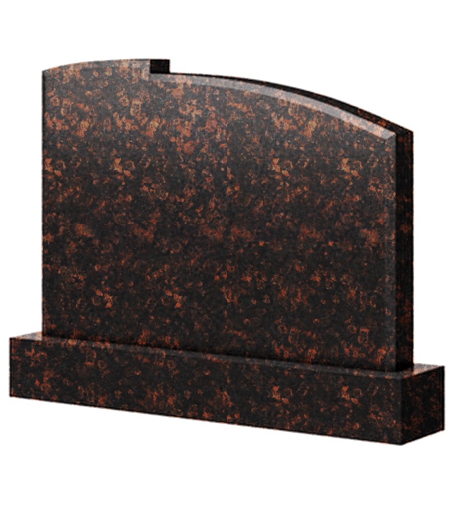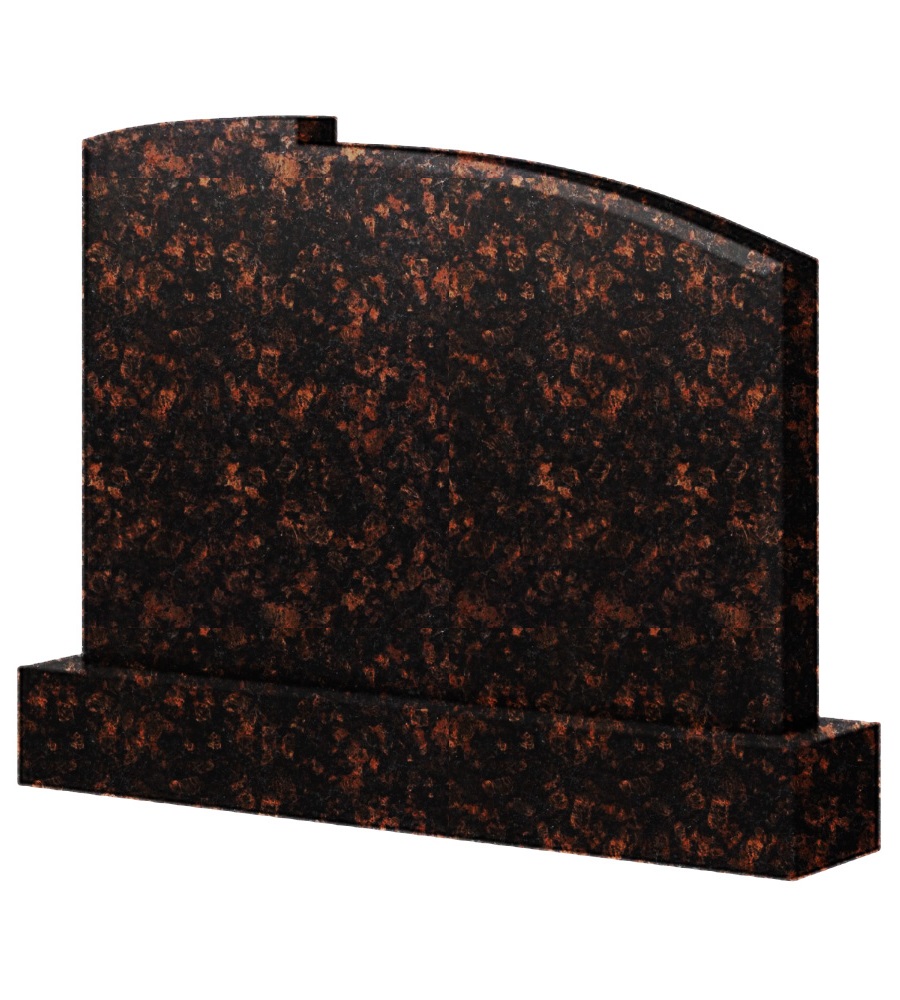 Памятник горизонтальный из гранита, форма с изгибом сверху и прямыми боками памятника. В комплект входит подставка