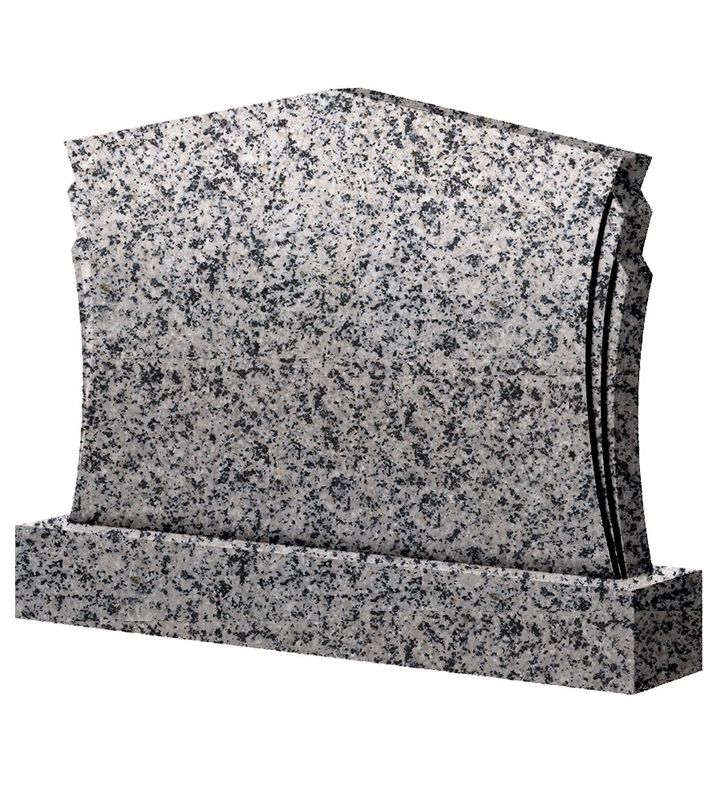 Памятник горизонтальный из гранита, форма фигурная. С заостренным изгибом сверху и полувеерами по бокам памятника. В комплект входит подставка