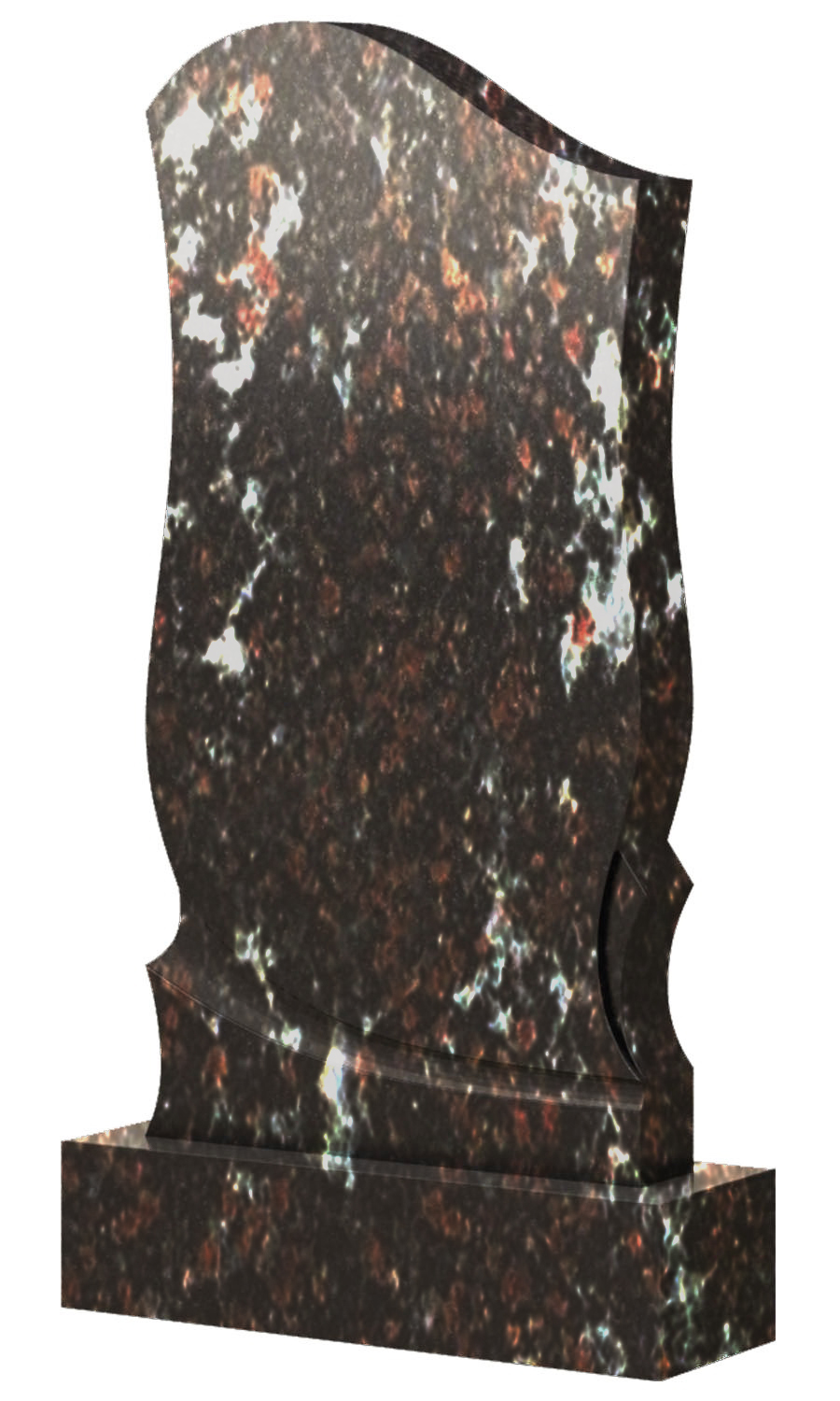 Памятник вертикальный из гранита, форма фигурная с дополнительными срезами снизу. В комплект входит подставка.